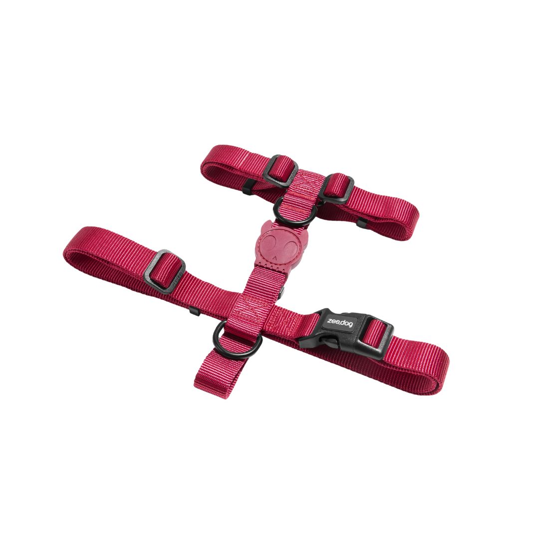 Zee.Dog H-Harness está fabricado en poliéster suave y resistente. Cuenta con dos anillas en forma de D para la fijación de la correa.