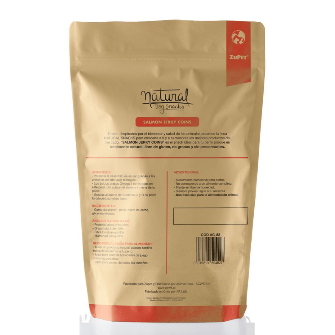 El Salmon Jerky Coins de Natural Dog Snacks es el snack ideal para tu perro porque es 100% natural, libre de glúten, libre de granos, no contiene preservantes, y es sumamente rico! Gracias a su elaboración con productos 100% naturales.
