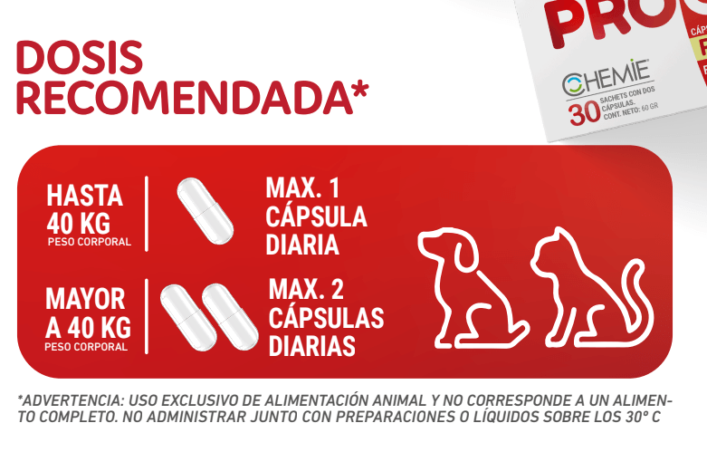 Consumo máximo: para perros y gatos de hasta 40 kg de peso corporal, administre máx. 1 cápsula al día.
